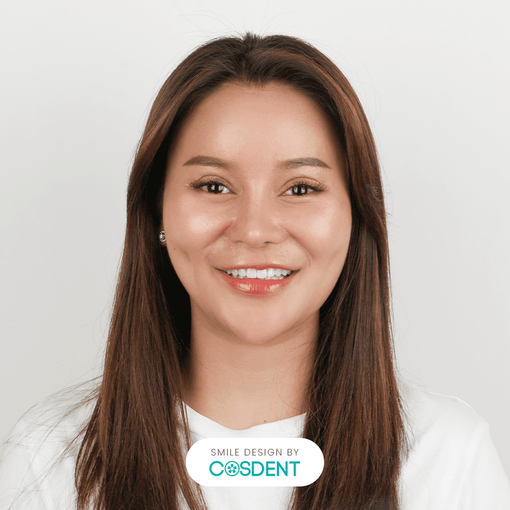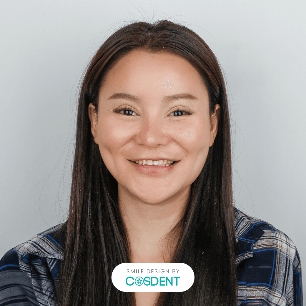 หลังจากการรักษาด้วยวีเนียร์ด้วยเฉดสี OM3 ฟันที่มีขนาดเล็กได้รับการแก้ไขทำให้ฟันดูสวยงามและเป็นธรรมชาติเหมาะสมกับใบหน้ารูปหัวใจ ช่วยให้รอยยิ้มดูสมดุลและมีเสน่ห์มากขึ้น ตรงตามความต้องการ